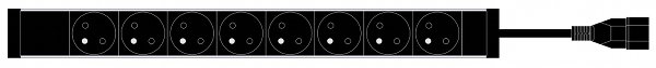 Vertical mounting in 19” rack.Mounting brackets for installation in 4 orientations. Supply cable H05VVF.3G1,5mm² in white or black colour terminated unischuko angled plug. Standard length up to 10m. Maximum current 16A (3 680 W). Mains voltage 230 VAC Protection level IP20. Declaration of Conformity CE.
